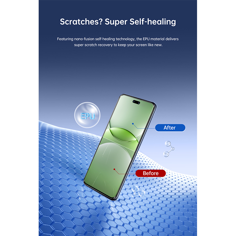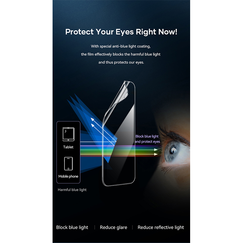 Filme leve anti-azul EPU premium-bloqueia 21,6% de luz azul prejudicial para reduzir a tensão ocular. A nano tecnologia de autocura repara arranhões, mantendo as telas intocadas.